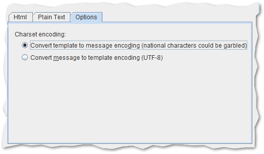 - Convert template to message encoding - this option is selected by default, may cause that signature national characters will be garbled
