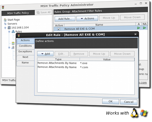 MSH Traffic Policy for Postfix and Zimbra is a sophisticated email management system that allows to set server-sided rules for automatic content control and flow administration.